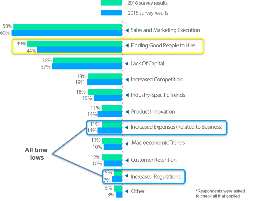being “Finding Good People to Hire” at 49%. It’s not surprising that companies with