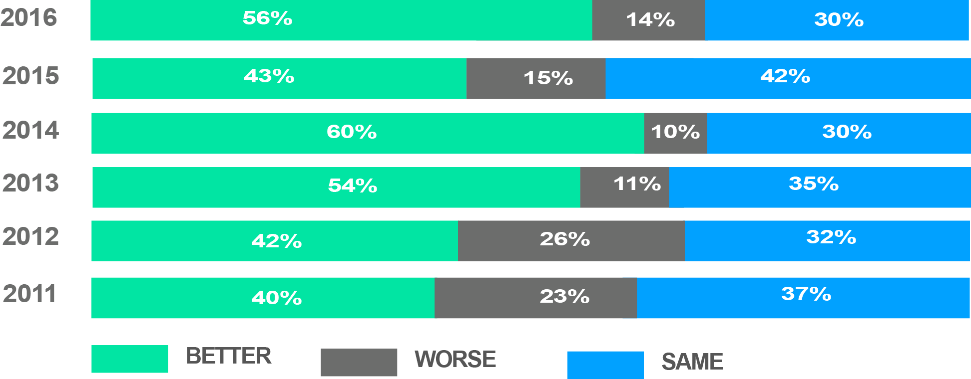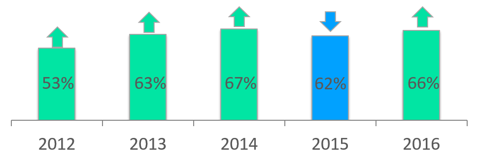 56% from 43% in 2015 ). It is worth noting that the survey was conducted in December 2016,