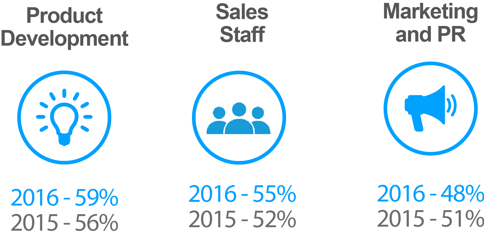 the number one response has been “Product Development” (increasing to 59% in 2016 from 56% in