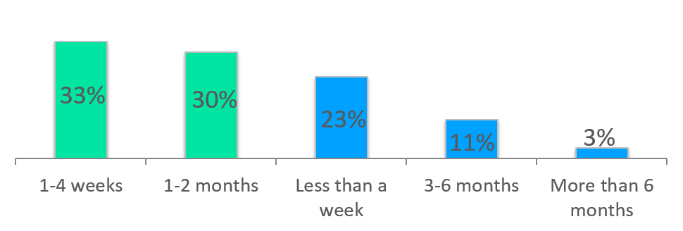 onboarding times varied from less than a week to more than 6 months, with a majority falling