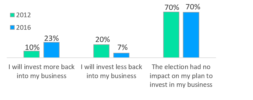 business than they’d planned to before the election, compared to 10% in the survey conducted